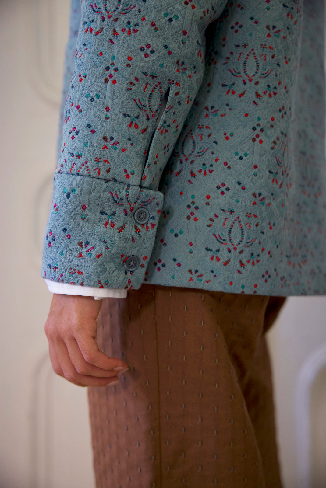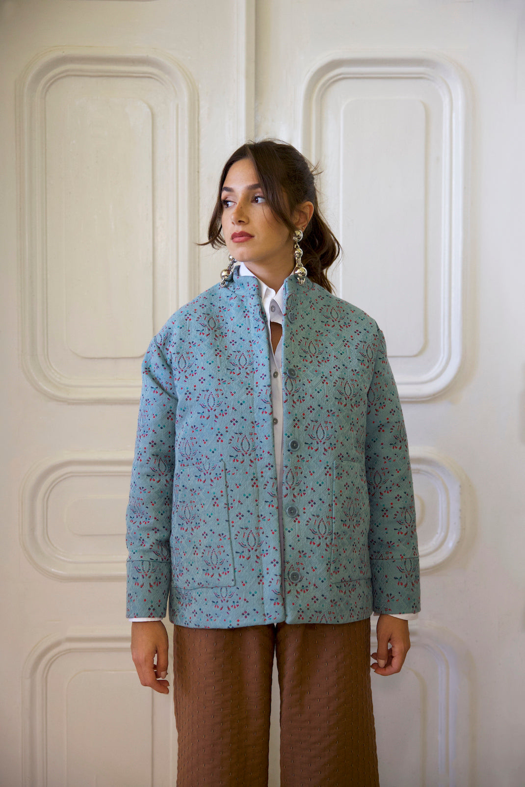 Introducing the Frost Jacket – your new go-to layer for effortless cool. This breezy cotton number features a relaxed silhouette with a charming mid-height collar and full-length sleeves that mean business. Pop the front buttons open or keep them fastened for totally different vibes. Practical oversized pockets? Check. Delicate embroidery that whispers personality? Double check.